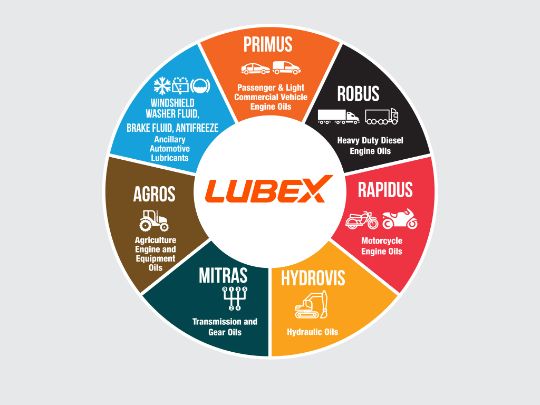 Мастильні моторні матерiали вiд Lubex пропонують передові технології і надійні рішення для всіх компонентів транспортних засобів. Зокрема, це кращий друг всіх компонентів, від двигуна до диференціала, від антифризу до трансмісії, завдяки своїм базовимим оливам і технології присадок для автомобілів нового покоління.